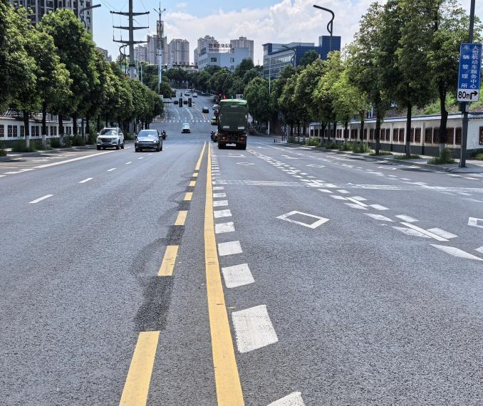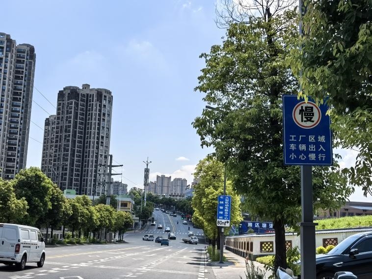 在今良造制酒有限公司大门路口安装车辆出入告知牌、道路设置单虚线、增设减速带。叙州区工商联供图