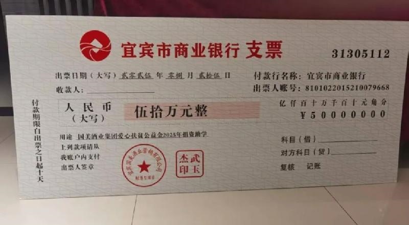 为积极践行企业社会责任,助力长宁教育事业发展与人才振兴,8月25日,宜宾国美酒业股份有限公司成功举办了“爱心扶贫公益金2025年度捐资助学仪式”。本次活动旨在通过公益捐赠,切实帮助长宁县品学兼优、家境困难的学子圆梦求学路。