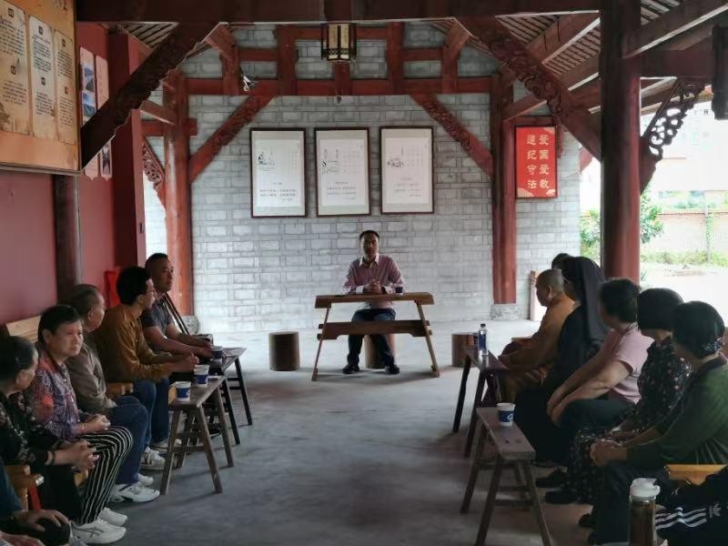 9月29日,南溪区组织宗教界在川祖寺开展集中升国旗仪式暨爱国主义教育活动,全区各宗教团体、宗教活动场所管委会班子成员及教职人员、信教群众代表共20余人参加活动。