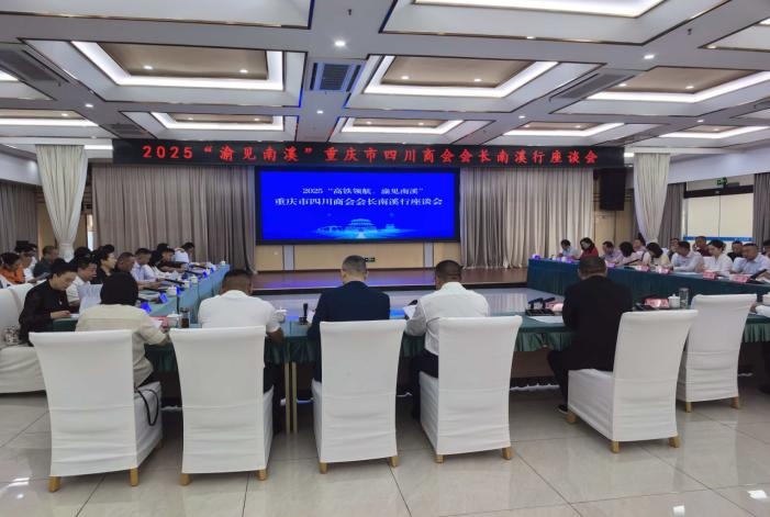 在2025“渝见南溪”重庆市四川商会南溪行座谈会上,省、市、区相关部门负责同志、本地国有企业及重点民营企业代表与重庆川商精英济济一堂,气氛热烈。