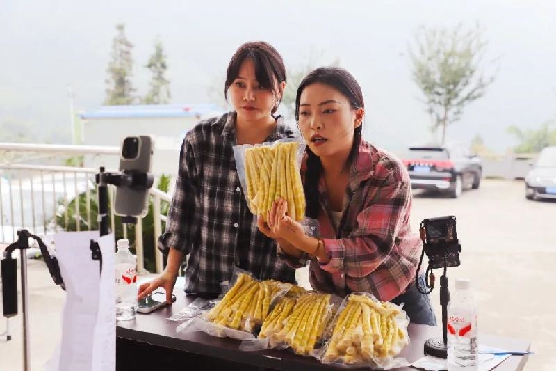 近日,在兴文县仙峰苗族乡满山红村的党群服务中心,一场别开生面的带货直播火热进行。这场活动由兴文县电子商务(跨境)产业园和兴文县服务业发展促进中心共同组织,经验丰富的直播团队来到满山红村,不仅让深藏山间的“土味道”走向千家万户的餐桌,同时也为当地村民培训直播技巧。
