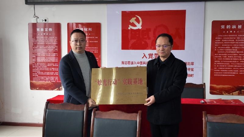 在启动仪式上,廖霆代表民盟宜宾市委会为怡乐镇中心学校“烛光行动”实践基地授牌。