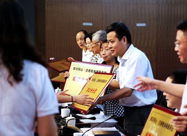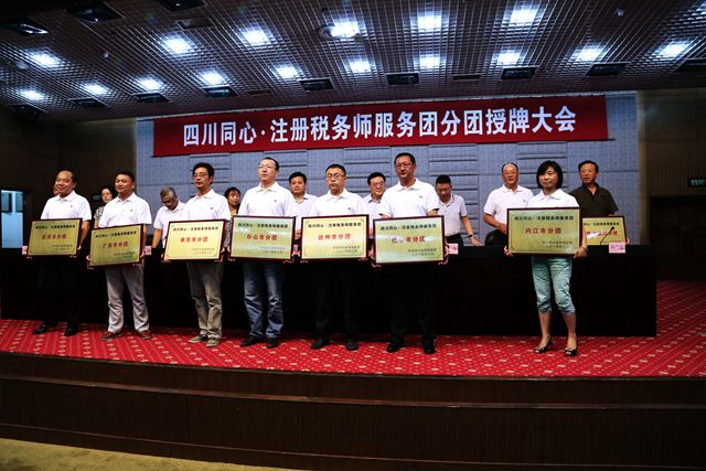 会议总结了“四川同心•注册税务师服务团”成立2年来的主要工作和取得的成绩,研究部署了下一步工作任务,并向全省21个市(州)及成都10个县(市、区)成立的31个分团授牌。