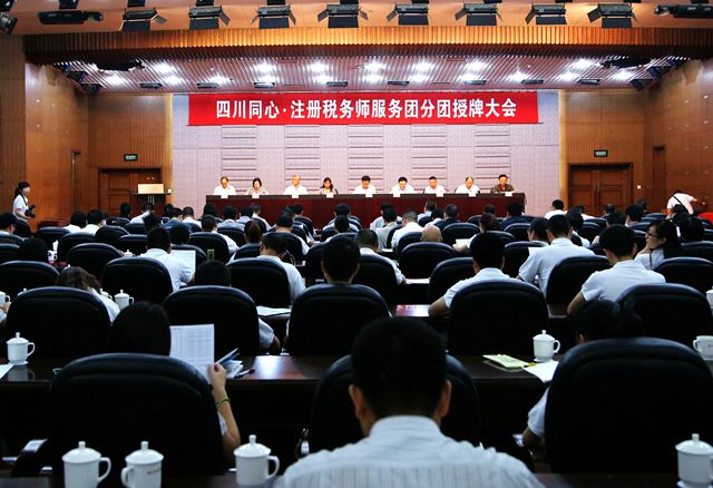 近日,省委统战部、省国税局、省地税局联合召开四川“同心•注册税务师服务团”工作推进会暨市州分团成立授牌大会。省委统战部副部长刘建军,省国税局副局长祝培洪,省地税局总经济师郭辉,中国注册税务师协会党委工作部主任、中国注册税务师同心服务团副秘书长张宇红出席成立大会,并为31个市州服务分团授牌。会议由省注册税务师协会会长张炜主持。各市(州)委统战部分管副部长,成都市国税局、地税局领导及服务团成员、志愿者共130人参加会议。