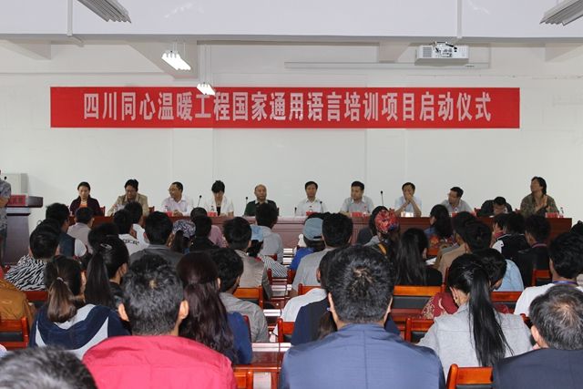 “同心温暖工程”国家通用语言培训项目是中华职教社根据中央统战部要求,努力发挥自身优势,服务少数民族地区经济社会发展的重要举措。项目以国家通用语言培训为切入点,根据学员就业需求和项目地经济社会发展需要,通过专门开发的国家通用语言学习系统,以智能化网络互动教学模式,即“人机对话”交流模式,进行“语言培训+技能培训”,帮助少数民族青年掌握国家通用语言和一技之长,从而达到转移就业、脱贫致富的目的。培训对象为18-35岁不懂或不能熟练运用国家通用语言的少数民族青年。每期培训学员100名,培训时间两个月。四川是继新疆、西藏之后第三个实施该培训项目的省(区)。