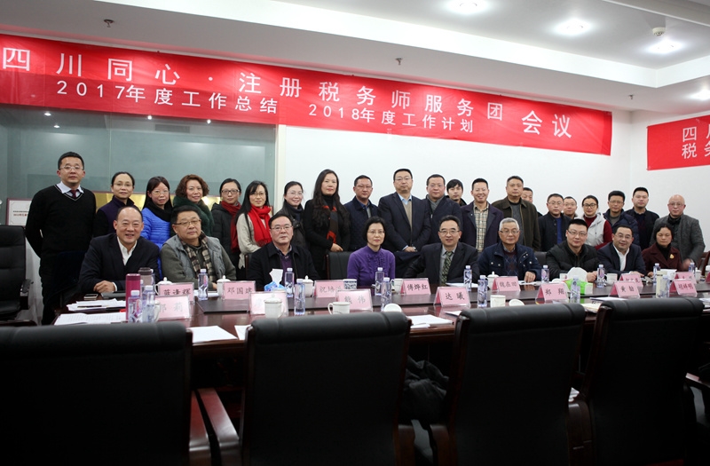 自2012年组建以来,四川同心·注册税务师服务团在省委统战部、省国税局、省地税局和行业党委的领导下,积极践行同心思想,扎实开展同心服务,日益成为联系党外知识分子的桥梁纽带,为推动注税行业统战工作和我省经济社会发展作出了积极贡献。在刚刚过去的2017年里,四川同心·注册税务师服务团强化同心引领,深入开展践行社会主义核心价值观主题活动,不断巩固团结奋斗的共同思想政治基础;发挥专长优势,开展“税法宣传进校园”、“税收法规公益培训”等系列品牌活动,覆盖学生、纳税人、税务人员10000余人;服务党委决策,围绕国家税制改革、企业转型发展等重点内容深入调查研究,积极建言献策,蓝逢辉《关于营改增改进的提案》获得了政协第十二届全国委员会优秀提案的表彰,并在俞正声主席主持召开的全国政协双周协商会围绕“电子商务监管”作汇报发言;倾力社会公益,先后开展“8.8九寨沟地震”捐款活动、“四川注税行业统一战线教育扶贫凉山行动——瓦古乡教育帮扶”等扶贫济困、捐资助学活动,全年累计捐款捐物达10万余元;强化人才培养,选派服务团骨干团员参加各级各部门举办的教育培训活动,积极向各级党委统战部门推荐历经服务团工作检验、工作成绩突出的行业党外代表人士。目前,四川同心·注册税务师服务团共有26名团员担任国家、省及地方人大代表、政协委员。6个分团和32名团员还被省委统战部、省人社厅等7部门联合表彰为“四川同心·服务团活动先进集体和先进个人”。