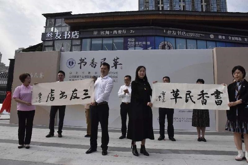 启动仪式上郭连致辞并为叁友书店颁授“书香民革自贡市委会学习基地”,同丁琴为民革自贡市中山学校支部党员之家揭牌;叁友书店同自贡中山书画院签订合作协议;倪勇宣布活动启动。