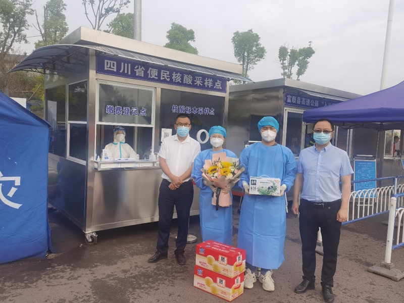 富顺县人民医院按照县卫健局总体安排,负责互助高速路口的“入川即检”工作,加强来(返)川人员风险排查管控。作为核酸采集点位负责人,尚庆积极组织核酸采集人员进行全员培训学习,优化流程布局,坚持现场督导疫情防控工作。在一线人员面对潜在感染风险,以及巨大的工作压力时,尚庆第一时间关心慰问大家,为一线防疫人员送温暖,带问候,仔细聆听大家的心声,用心做好后勤保障工作。