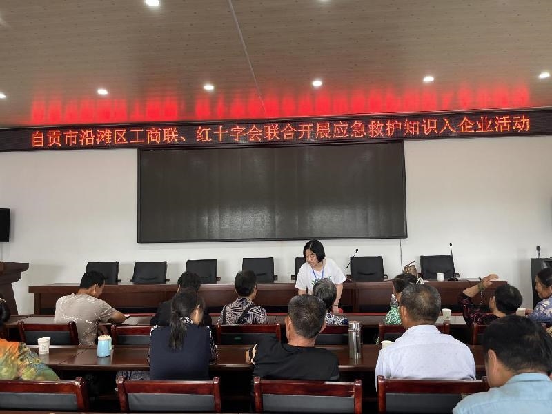 5月13日下午,区工商联(商会)联合区红十字会,走进沿滩区农业龙头企业——自贡清芷园农业开发有限公司开展应急救护知识入企业活动。来自市红十字会师资库的优秀师资何曼萍老师现场授课,企业管理岗位和生产一线的30余名职工参加培训。