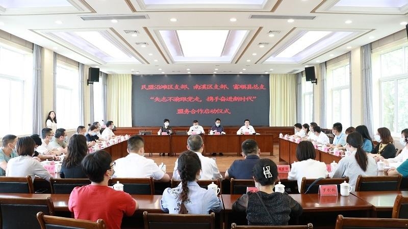 5月13日,自贡市沿滩区举行“矢志不渝跟党走、携手奋进新时代”盟务合作启动仪式。仪式上,民盟自贡市沿滩区支部主委、沿滩区人大常委会副主任林平,民盟宜宾市南溪区支部主委、南溪区行政审批非公经济发展局局长李明华,民盟富顺县总支主委、富顺县政协副主席刘尧洪共同签订合作框架协议。中共自贡市委统战部常务副部长丁琴,民盟自贡市委会主委、自贡市政协副主席陈刚,民盟宜宾市委会主委、宜宾市政协副主席廖霆,中共沿滩区委副书记、沿滩高新技术产业园区党工委书记王红军等领导出席仪式。