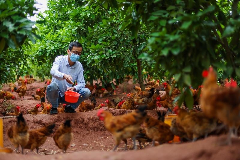 今年以来,大安区委统战部联系帮扶大安区回龙镇古井村试点集体经济“林下生态养鸡”项目成效明显。在该村黄金蜜柚基地的山头上,一群群鸡在果林下悠闲踱步,“咕咕”的叫声此起彼伏。