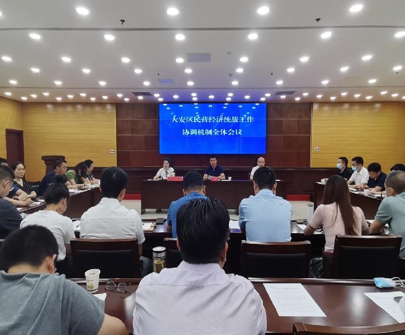 唐正涛强调,一要把党对民营经济工作的领导放在首位。近年来,大安民营经济在国际国内形势严峻的非常时期依然能持续向好发展,是区委区政府高度重视和坚强领导的结果,是区级各部门不懈努力的结果。要充分发挥党总揽全局、协调各方的领导作用,在区委统一战线工作领导小组领导下,形成各方面既明确分工又高效协同的工作格局。二要处理好部门职责和中心大局的关系。国务院出台了6方面33条稳经济一揽子政策措施,省市也相继出台了相关政策措施。各成员单位要超前谋划部署,提出有效落实举措,抓实抓好助企服务,做到生产不停、链条不断、产能不减、秩序不乱,为民营经济健康发展提供有力保障。三要着力打造良好的营商环境。严格落实协调机制工作要求,定期召开全体会议和专题会议,会商研判民营经济统战工作新形势新情况新任务,研究分析民营经济发展重大问题,及时宣传重要改革举措和涉企政策等信息,着力优化营商环境,为大安区高质量发展贡献力量。