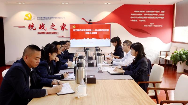 近日,东方电气集团东方锅炉股份有限公司在自贡基地统战之家召开专题会议,传达学习第十一次全国归侨侨眷代表大会精神。党委副书记何杨出席会议并讲话,东方锅炉侨联全体在岗成员、党委统战部相关人员参加会议。
