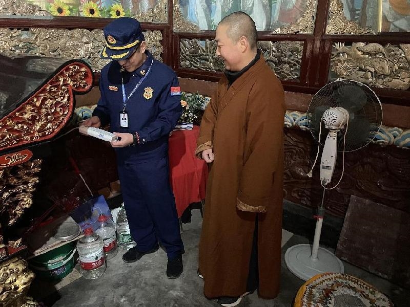 为切实加强辖区寺庙的消防安全管理,防范化解消防安全风险,坚决遏制重特大火灾事故发生,近日,贡井区民宗局联合区消防救援大队深入辖区宗教活动场所开展消防安全隐患排查工作。