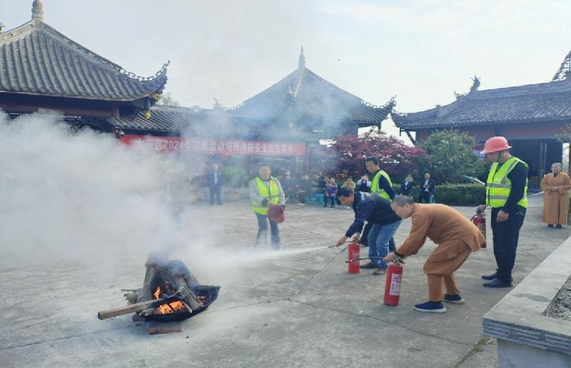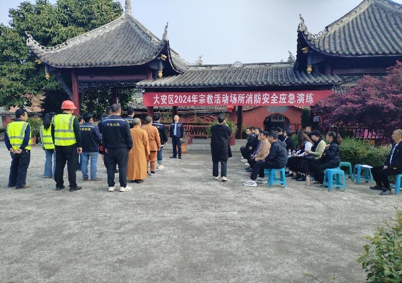 为全面提升宗教活动场所消防安全工作水平,提高其应对和处置突发事件的能力,3月27日,大安区委统战部(区民宗局)在大安区三多寨佛祖寺开展2024年宗教活动场所消防安全应急演练、安全管理培训活动,区应急管理局、区消防大队、相关镇街分管负责同志及各宗教活动场所负责人、安全员等50余人参加。