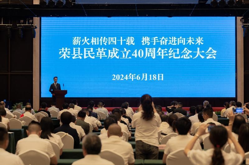 6月18日下午,荣县民革成立40周年纪念大会在荣县天宇松悦酒店成功召开。民革四川省委会副主委、民革宜宾市委会主委、宜宾市政府副市长周文宇,自贡市人大常委会副主任、中共荣县县委书记易冬,民革自贡市委会主委、自贡市政协副主席郭连,中共自贡市委统战部常务副部长缪体强,荣县人民政府县长赵磊,荣县人大常委会主任吴永红,荣县政协主席陈伯於,中共荣县县委常委、县委统战部部长胡爱华等出席会议。