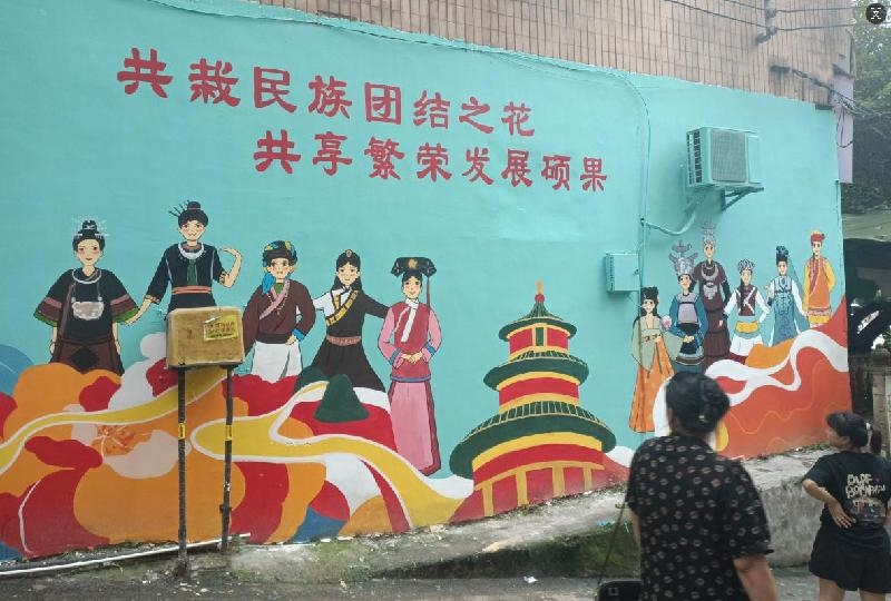 潜移默化,传递民族团结进步好声音。彩绘墙前人来人往,不时有人驻足观看,大家认真阅读墙上的文字内容,用口耳相传、耳濡目染带动身边的亲戚朋友牢固树立休戚与共、荣辱与共、生死与共、命运与共的共同体理念,让原本沉默的彩绘墙成为一面面“会说话的墙”,进一步营造浓厚民族团结氛围,激发辖区各族群众主动参与民族团结工作的热情,共同构建美丽、和谐、宜居的自贡西城。