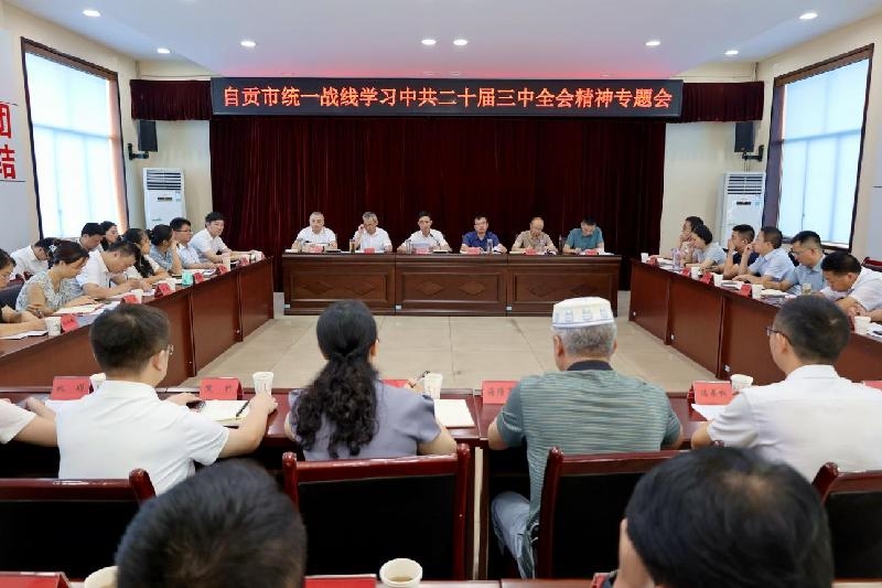 7月22日,自贡市召开全市统一战线学习中共二十届三中全会精神专题会,集中学习《中国共产党第二十届中央委员会第三次全体会议公报》,对全市统一战线学习宣传贯彻工作作安排。市委统战部常务副部长缪体强主持会议并作工作安排。