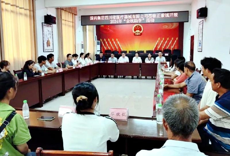 8月30日上午,荣县正紫镇举行2024年“金秋助学”活动仪式,向11名学子各发放资助现金33000元,本次资助由自贡市第一人民医院、四川省自贡市医药有限公司、国药控股四川医药股份有限公司共同资助。国药控股四川医药股份有限公司副经理周佳和爱心人士吴腾分别与孤儿学子唐诗琴和家境非常困难的学子江妮徽签定《温暖护航贫困大学生资助协议》,承诺在学期中每月定额资助生活费1500元,直到大学毕业。