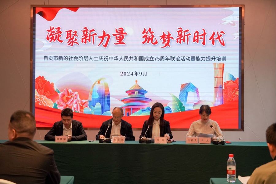 9月30日,以“凝聚新力量 筑梦新时代”为主题的新的社会阶层人士迎国庆活动暨能力提升培训在富顺县举行。本次活动由中共自贡市委统战部主办,自贡市新的社会阶层人士联谊会协办,中共富顺县委统战部、富顺县新的社会阶层人士联谊会承办,来自自贡市委统战部、富顺县委统战部、市县新联会相关负责人及部分新联会会员共100余人参加。