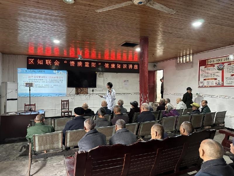 一大早,来自沿滩区知联会和新联会的22名成员分别携带健康体检器材和食材来到仙市镇敬老院,来自知联会卫健系统分会、区人民医院的内科副主任周强为老人们集中讲授“脑卒中的防治”等健康知识。以通俗易懂的语言、直观明了的图文,让老人们深入了解脑卒中的类别、危害和预防措施等科学医养知识。