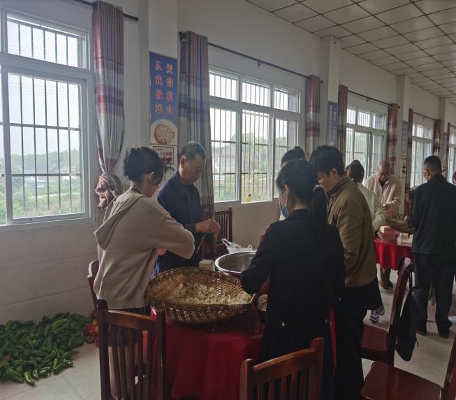 同时,区新联会会员们在厨房忙得热火朝天:剁馅儿、处理葱姜蒜,为敬老院老人们包抄手……经过一个多小时的欢快协作,一盘盘抄手终于包好了。老人们吃着大家制作的抄手,脸上洋溢着幸福的笑容。