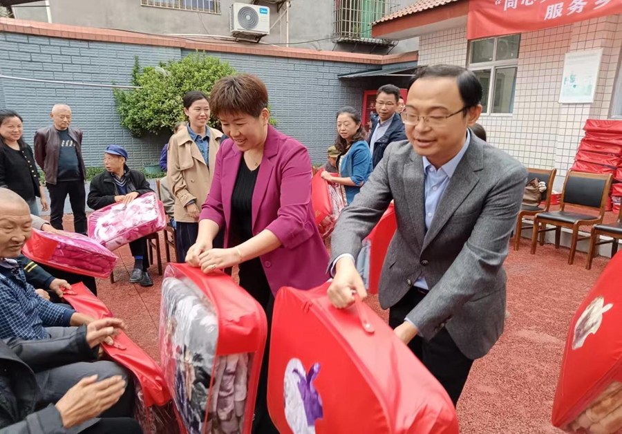 金秋十月,丹桂飘香。为传承敬老爱老的中华民族传统美德,擦亮知联“同心关爱一老一小”品牌,让农村孤寡老人感受到“同心关爱”的温暖。10月10日,在重阳节到来之际,自贡市党外知识分子联谊会组织部分无党派人士、党外知识分子到富顺县东湖街道敬老院开展敬老服务乡村行活动,为该院50多位老人送上慰问品和节日的祝福!市知联会会长、市政协副主席刘端芬,市委统战部副部长、市侨办主任(兼)唐光权,富顺县委常委、统战部部长曾旭,县委统战部、县民政局、县知联会相关人员参加上述活动。