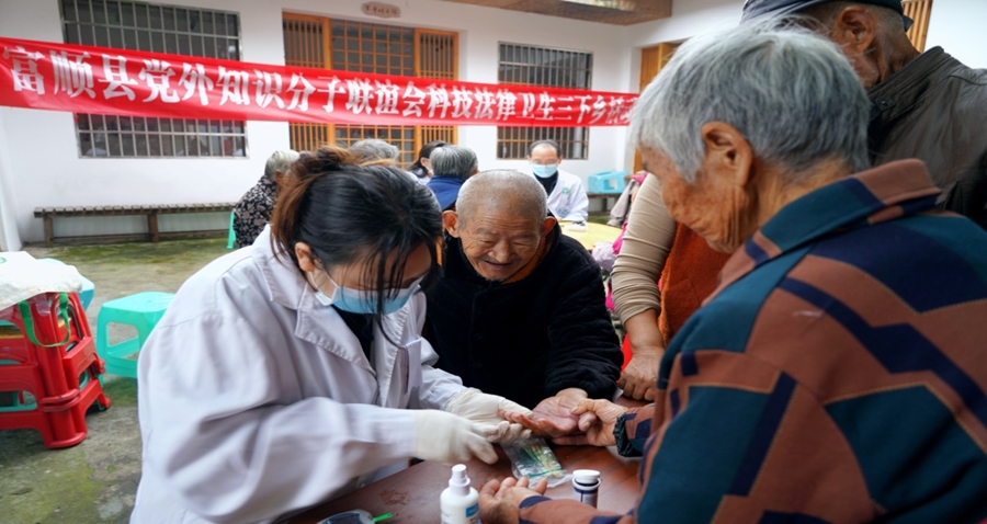 近日,富顺县知联会组织富顺县人民医院、富顺侨兴医院部分会员,到狮市镇罗寺村开展科技法律卫生“三下乡”活动,受到当地村民的热烈欢迎。