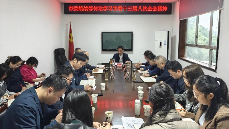 11月11日,中共自贡市委统战部召开专题会议,传达学习市委十三届八次全会精神,研究部署全市统一战线学习贯彻措施。市委统战部常务副部长缪体强主持会议并讲话。