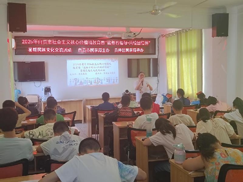 8月4日,由自贡市民宗局主办,贡井区民宗局承办的“盐都石榴籽•共绘团结情”暑期民族文化交流活动在贡井蓆草田社区“童伴之家”拉开序幕。40余名来自基层社区的各民族青少年代表欢聚一堂,用五彩画笔描绘石榴之艳,厚植“中华民族一家亲”的浓厚情感。
