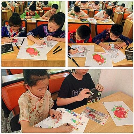 活动伊始,志愿者老师以“动画+故事+歌曲”为载体,向孩子们普及民族团结知识,生动解锁民族文化密码,让孩子们感受“五十六个民族多元一体”的魅力,悄然播下民族团结的种子。在绘画环节,各族青少年化身“小画师”,用绚丽多彩的画笔描绘出一幅幅象征民族团结的石榴籽图案,充分展现了各族青少年对中华民族大家庭的热爱和对民族团结的深刻理解。创作过程中,孩子们还不时相互交流,以“画”为媒,进一步深化了各民族青少年之间的交往交流交融。