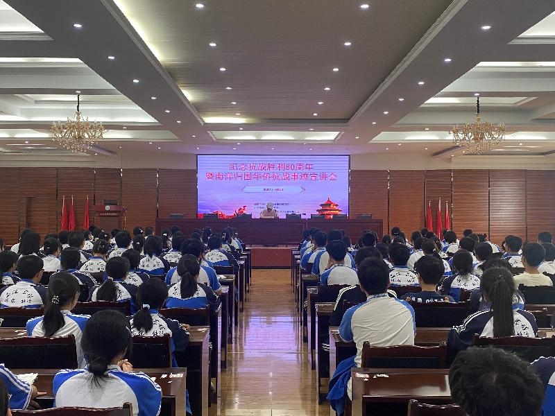 为纪念中国人民抗日战争暨世界反法西斯战争胜利80周年,大力弘扬伟大抗战精神,深入讲好抗战故事,8月27日下午,荣县县委统战部在荣县中学举行纪念抗战胜利80周年暨南洋归国华侨抗战事迹宣讲会,县委常委、统战部部长、河口镇党委书记朱军,县委统战部常务副部长吴文根、县侨联主席许钢,以及200余名青年学生参加。
