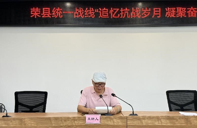 会上,全体人员集中观看了南洋归国华侨张君武抗战事迹短片,短片以珍贵的历史影像、翔实的文献资料为依托,生动还原了张君武先生在抗战时期毅然放弃海外生活、投身祖国救亡图存事业的英勇历程,展现了侨胞“身处南洋、心向祖国”的赤子情怀。在主题分享环节,张君武先生后辈、民主党派成员、少数民族干部、新的社会阶层人士和网络人士代表结合各自实际、畅谈感悟。民主党派代表谈到,抗日民族统一战线是凝聚全民族力量的重要纽带,如今要从历史中汲取合作共事的智慧,更好地履行“参政议政、民主监督”职能,为荣县发展建言献策;新联会、网联会代表则提出,将发挥新媒体传播优势,把荣县抗战故事转化为年轻化、多元化的传播内容,让红色基因在新时代青年群体中薪火相传。