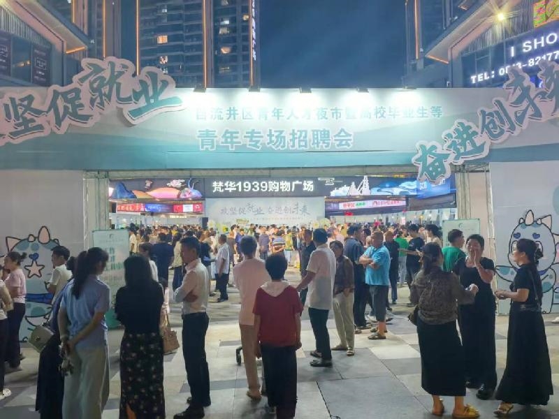 近日,自流井区“攻坚促就业 奋进创未来”青年人才夜市暨高校毕业生专场招聘会在梵华1939广场举行,区人社局、区就业局、区工商联等11个部门参加。招聘会吸引60余家企业入驻,提供岗位2000余个,现场应聘求职者达3000人,发放各类宣传资料1000余份,共收到简历200余份。