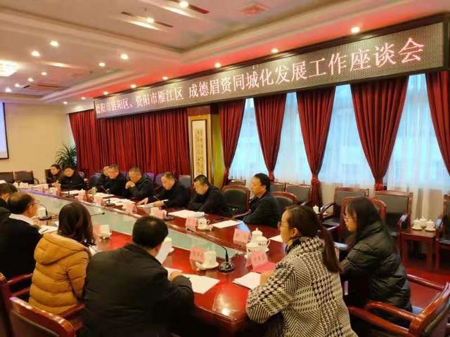 座谈会上,与会人员观看了《雁江区城市宣传片》,分享了"蜀人原乡"、"中国长寿之乡"雁江魅力。两区本着凝心聚力、优势互补、协作联动、互通互鉴、共建共享的合作原则,分别介绍了各自区情和统战部、工商联、新联会工作开展情况,围绕如何凝聚统战力量助推成德眉资同城化发展进行了深入交流探讨。