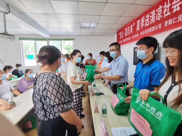 7月20日,民建资阳市委会到资阳市雁江区资溪街道雁南社区开展“同心· 雁归来”夏季送清凉社会服务活动,为奋战在一线的社区工作人员、环卫工人等送去关怀和慰问品。