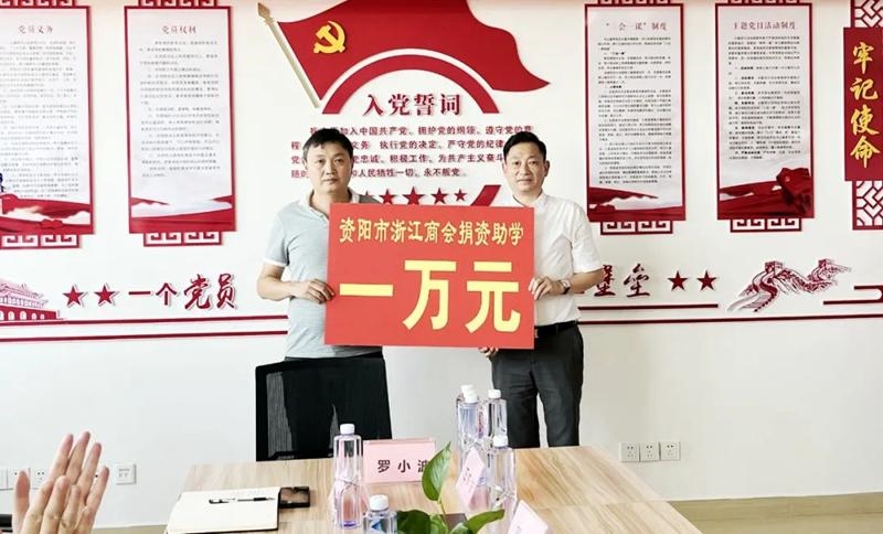 8月11日,资阳市浙江商会开展捐资助学活动,为临空经济区雁江镇排桶村两名品学兼优、家境困难大学生捐赠助学金。市委统战部副部长、市工商联党组书记陈锦阳出席捐赠活动并讲话,资阳市浙江商会会长印志权为受捐学生发放助学金,资阳市浙江商会党支部书记陈久开主持捐赠仪式。