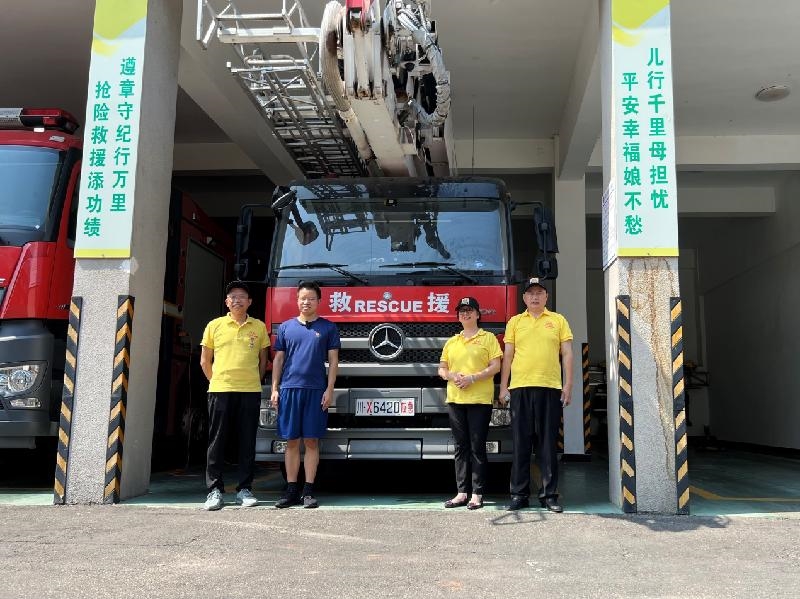 8月23日,资阳民建会员企业家中科思成建设集团资阳分公司总经理严新文带领企业员工将一批矿泉水、牛奶等慰问物资送到了资阳市雁江区消防救援大队,表达了对全体消防救援人员在8月21日扑灭资阳城郊凤岭公园附近山火行动中英勇救火行为的崇高敬意和感激之情。