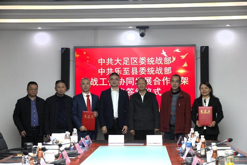 12月1日,中共大足区委统战部、中共乐至县委统战部统战工作协同发展合作框架协议签约仪式在重庆大足区举行。大足区委常委、统战部部长陈建华,乐至县委常委、统战部部长齐九根,两地统战部门相关负责同志,部分党外代表人士参加。