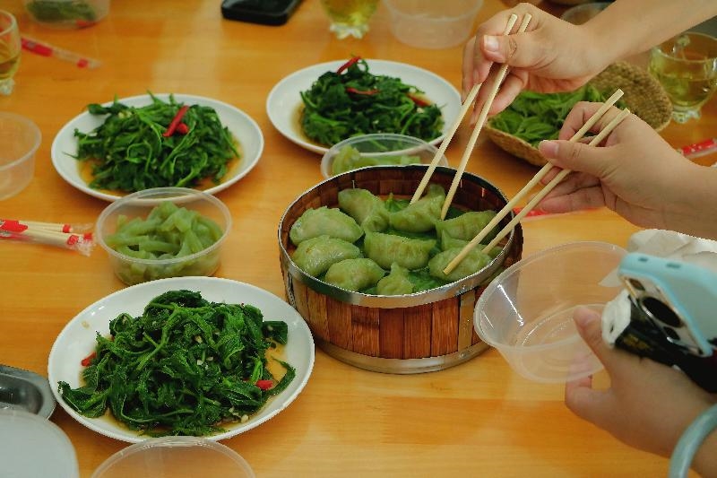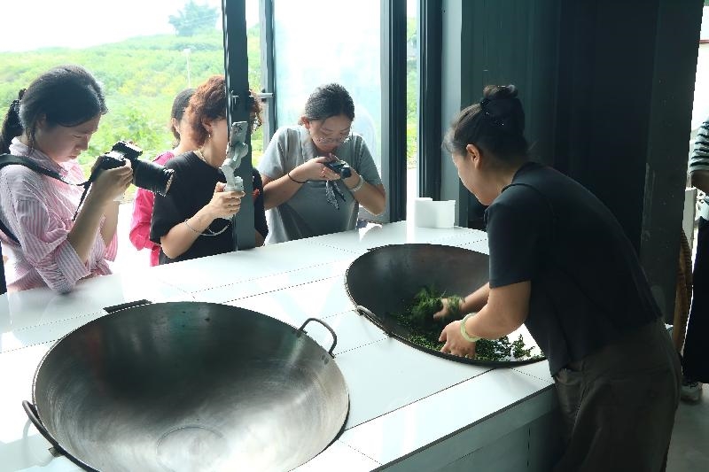 非遗桑茶工坊内,传承人杨华边说边演示,“做桑茶讲究‘三杀三揉+低温烘焙’,一步都不能少”。大家围在一旁,有的观察翻炒的火候,有的尝试揉搓桑叶,亲身体验非遗工艺的细腻与严谨。待新茶制成,传承人提壶注水,琥珀色的茶汤注入杯中,清甜茶香瞬间漫开,大家忍不住赞叹,“这茶比想象中更清爽”。随后的凉拌桑芽、桑叶凉粉、桑叶蒸饺等特色小吃更是让人举筷不停,大家在味蕾的满足中,聊得愈发投机,这一缕缕清香仿佛成了拉近彼此的纽带。