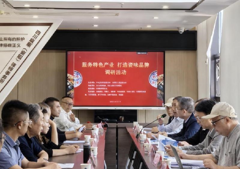 四川旅游学院烹饪学院原院长周世中、川菜文化研究院院长刘亚鹏、市餐饮协会秘书长秦照明和协会部分会员企业负责人参加调研座谈。