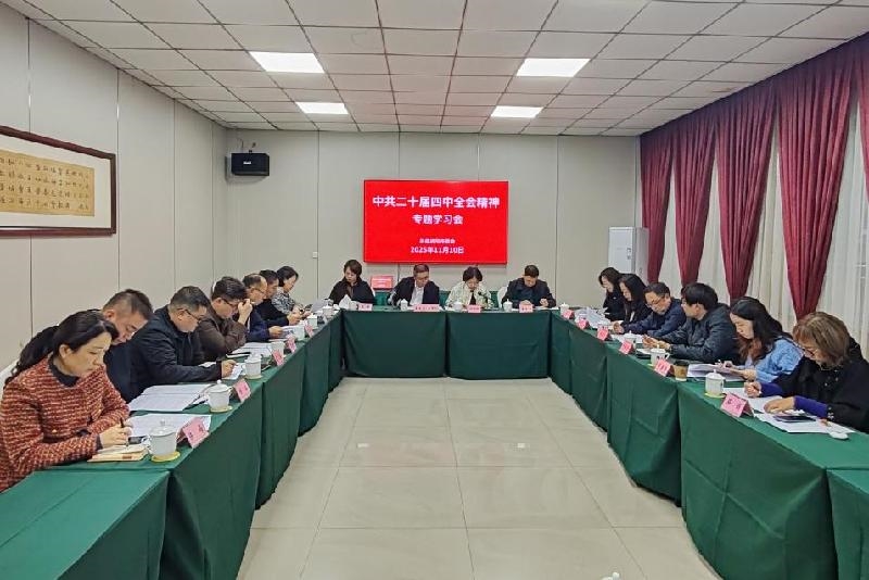11月10日,民建资阳市委会召开专题学习会,深入学习贯彻中共二十届四中全会精神。民建资阳市委会主委、市政府副市长李发刚主持会议并讲话。副主委唐珽婷、尧静、唐立勇,秘书长王轶,副秘书长、市委会委员、不是市委会委员的支部主委、各专委会主任,机关专干参加会议。